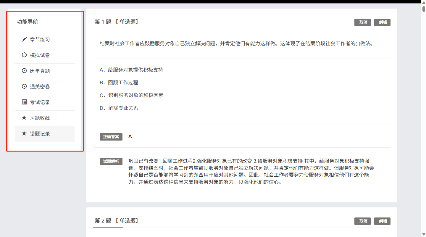 1、题库资源全覆盖:涵盖《社会工作综合能力》《社会工作实务》《社会工作法规与政策》全科目习题,包含单选题、多选题、案例分析题等所有考试题型,从基础巩固到考前冲刺的不同学习阶段需求均能满足。