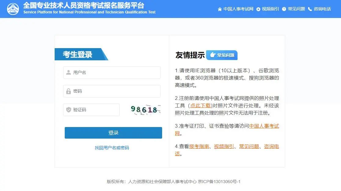 登录全国专业技术人员资格考试报名服务平台,使用您的用户名和密码进行登录。