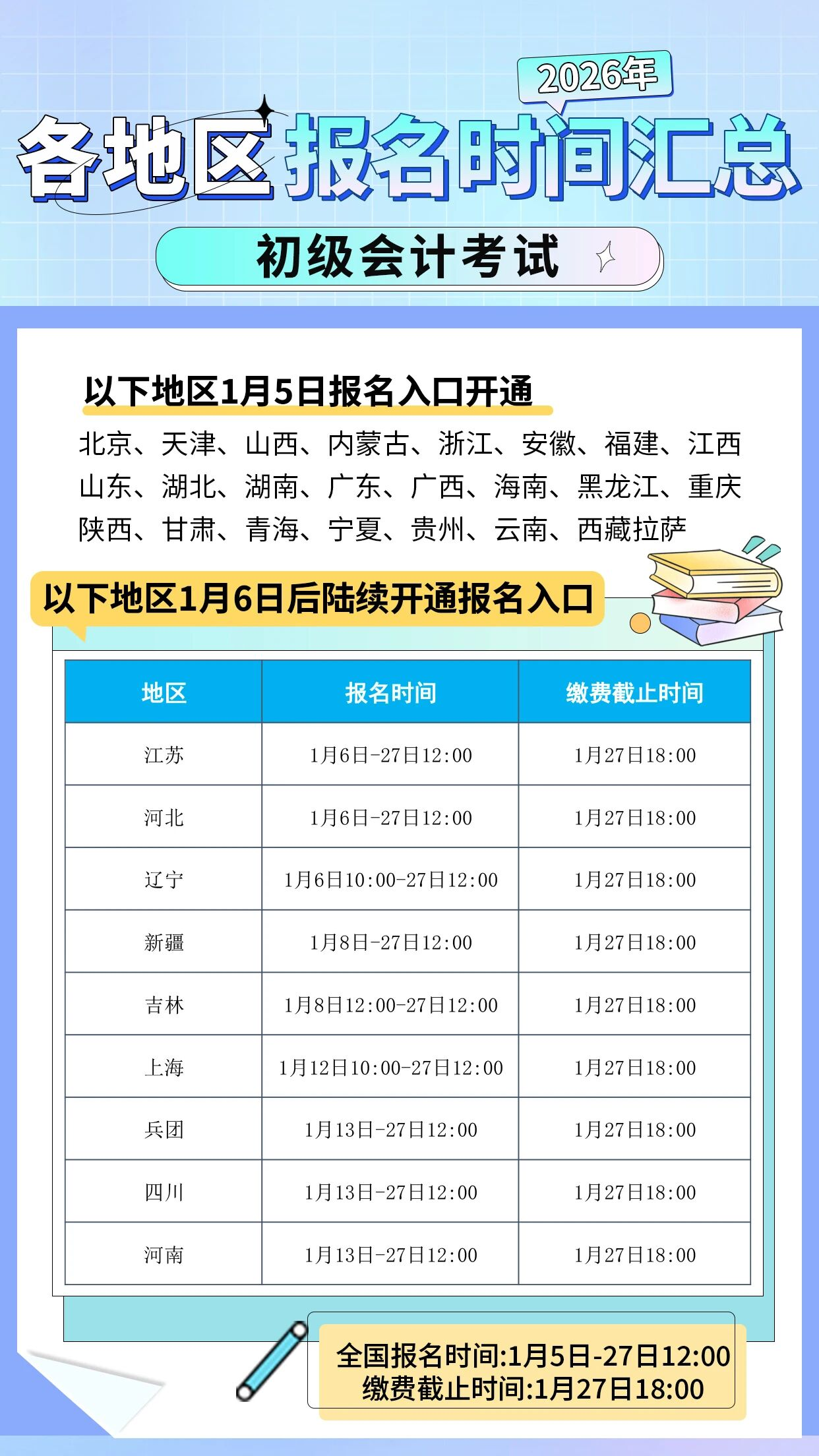 四、初级会计报名时间汇总